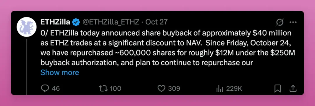 ETF+DAT 组合拳使 ETH 持有结构更机构化,但其是否与长期增长绑定仍存疑。最大隐忧来自 ETHZilla 抛售 ETH 回购股票的案例,虽无需恐慌,但已开创危险先例。