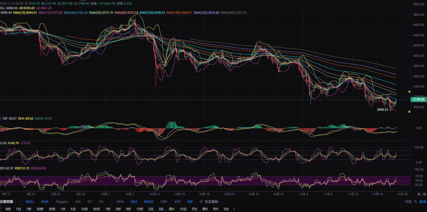 11.19张历辉:以太坊虚破3000日线收口多头反扑继续上攻?今日以太坊(ETH)最新行情分析及操作建议!