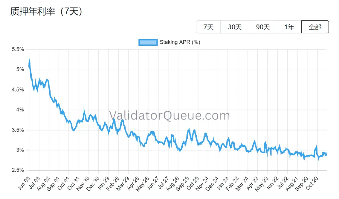 二是质押收益率下降和借贷成本上升,使得杠杆质押无利可图。当前以太坊的年化质押收益率约为 2.9% APR,远低于 2023 5 月创下的 8.6% 的历史最高纪录。