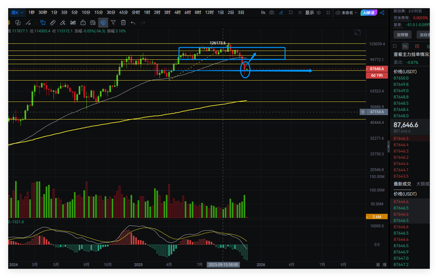 周线级别上看,大饼的这波下跌虽然快,但并未走出大级别的破位,整体走势属于正常回调,只是回调的比较快让我们有点难以接受,目前走势上看,周线下跌是触及到74505到126178这波反弹的支撑位置,也就是85500附近,下跌后周线收针收上来,说明短线支撑85500位置支撑有效,后市市场继续去下跌跌破74500的机会不大,将会先有一波反弹机会,这里还算是相对底部,长线交易者可自行布局多单,也可等回调至85附近再去布局多,自行把握机会,反弹目标预计在108500附近;短线交易者目前就不要去直接做多了,等待行情回调后再去做布局,推荐点位85000附近,84000可补仓,止损8200,目标看91000附近,短线回调的空间,想抓的可以去抓一下短线回调,自行把握进场机会;短线交易,控制风险,盈亏自理;