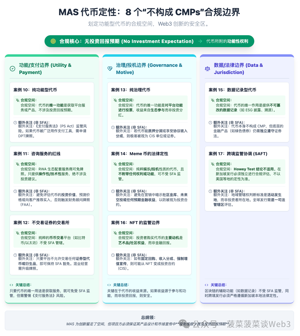 这种"技术中性"(technology-neutral)的监管哲学并不新鲜——美国SEC、欧盟ESMA都强调过类似原则。但新加坡的高明之处在于,它不仅说了原则,还给了详细的操作指南和17个具体案例。