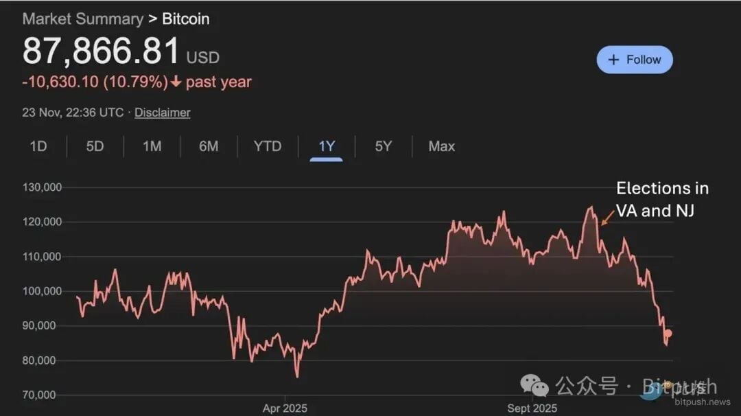 比特币已演变为一场“特朗普交易”,其命运与特朗普的政治影响力深度捆绑。因此,比特币近期的暴跌,在他看来并非孤立的市场行为,而是特朗普政治权力衰落、影响力消退在金融市场上的直接反映。