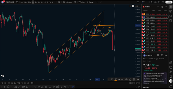 行情在今天早间出现了一段明显的急跌,比特币价格从91,000上方回落至87,000附近,单段下跌超过4,000点,属于标准的快速下行结构。