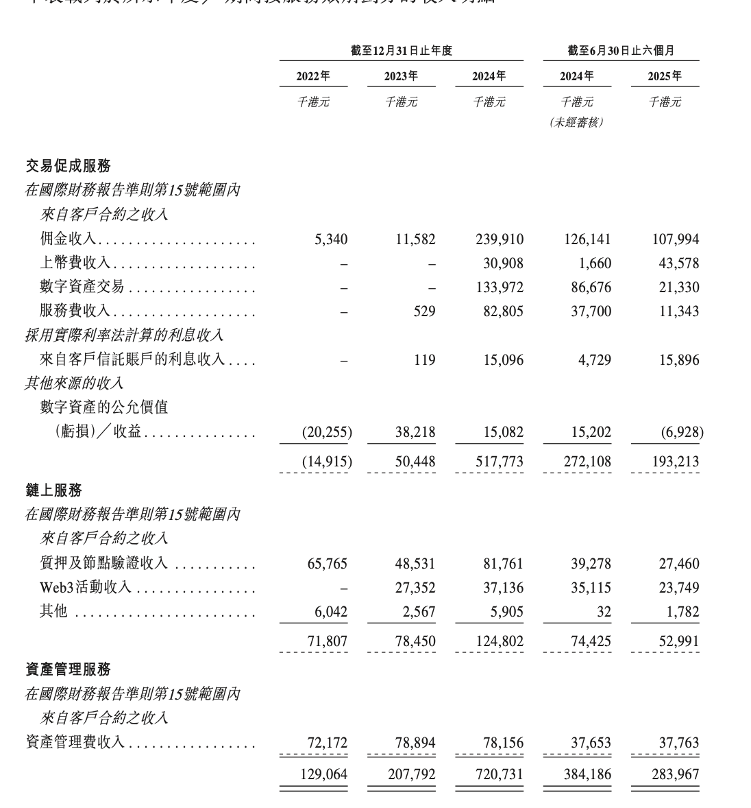 根据文件披露,HashKey收入的主要来源为交易促成服务、链上服务及资产管理服务。