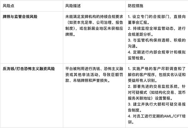 作为持牌交易所,面临法律合规反洗钱监管要求、技术与安全、市场与运营、资产与管理、战略、公共关系处理等各种风险。就本文所讨论的反洗钱这类风险管理要点,在于持续性遵守不断变化的全球及地方监管要求。