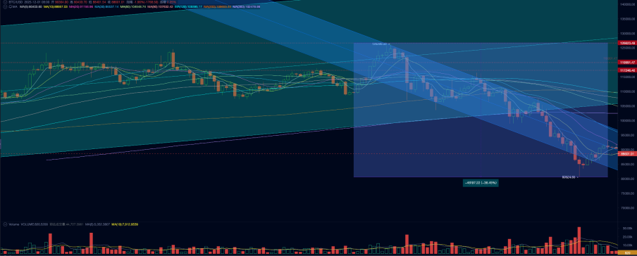 技术上,BTC一度跌破90000~110000美元区间所构建的“特朗普底”,并连续3周运行于360日均线之下。从空间及时间上,已经完成日线级“牛转熊”确认,正在完成周级别确认,月度级别的确认仍有待观察。