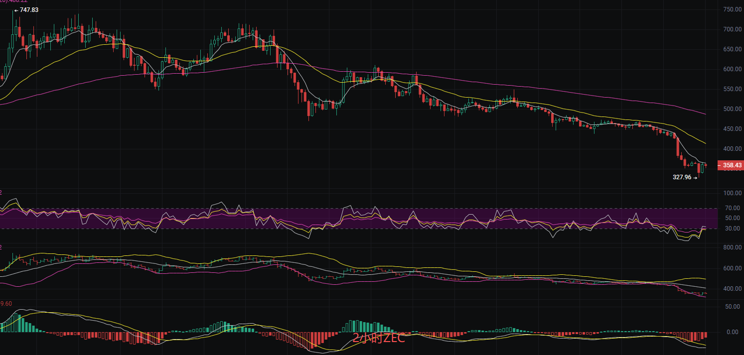 发稿前大零币现价358,丽盈判断当前大零币ZEC明显的下跌趋势中,技术面信号显示空头占据主导地位。均线系统呈现空头排列,近期价格跌破关键支撑位并伴随成交量放大,进一步强化了市场的看跌预期。此外,看跌吞没形态的出现表明市场可能继续下探,