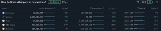 再看主网公链,最直接的变现方式就是 Gas 费。下图数据来自 Nansen.ai:
