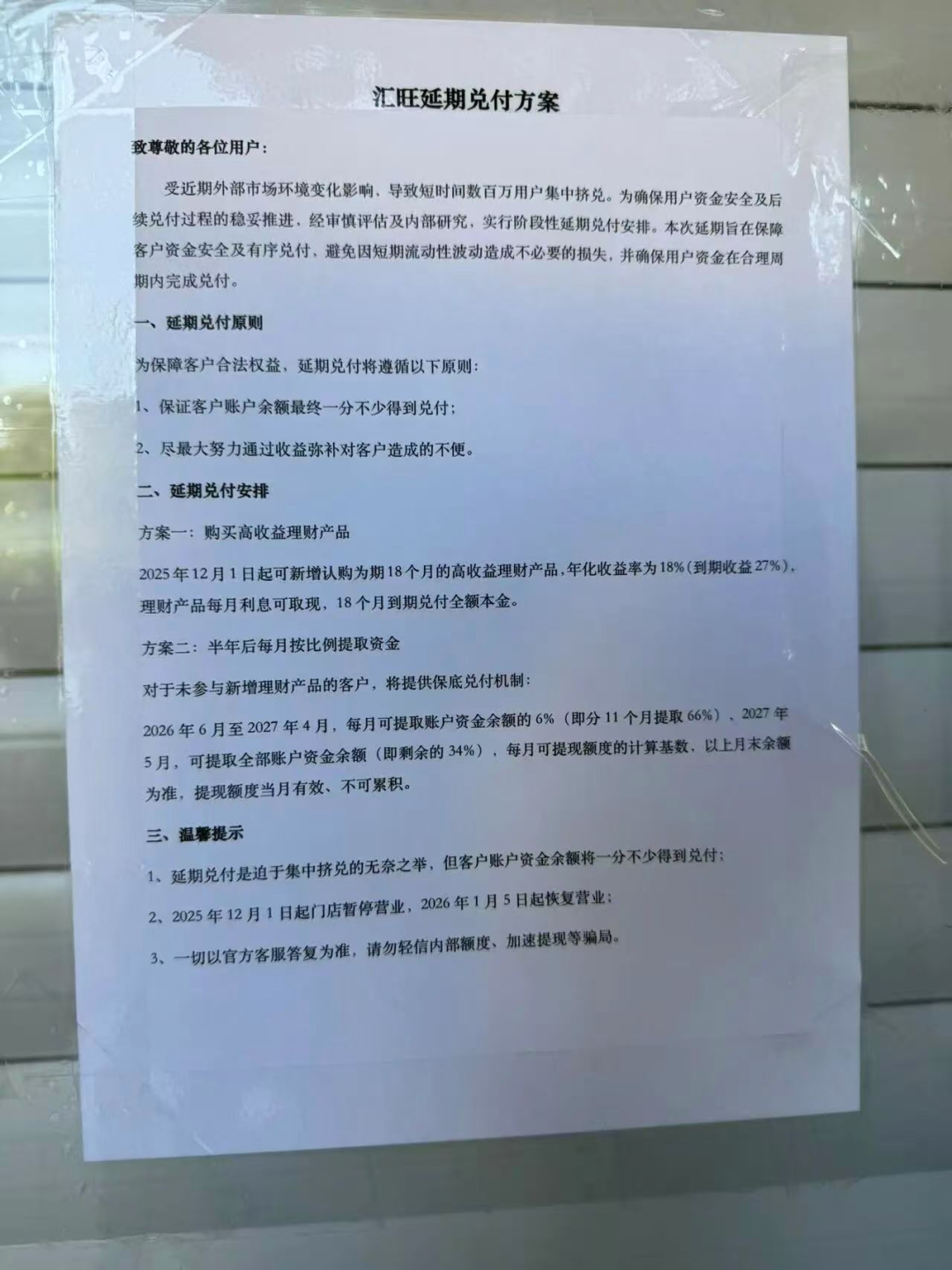据柬媒,汇旺发布公告称,受近期外部市场环境变化影响,导致短时间内数百万用户集中挤兑,为确保用户资金安全及后续兑付过程的稳妥推进,经审慎评估及内部研究,实行阶段性延期兑付安排。