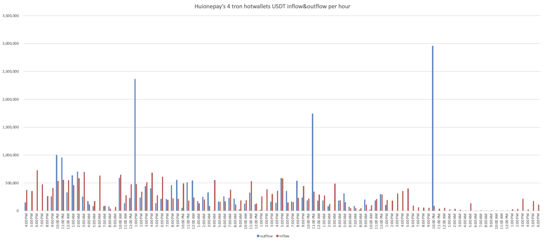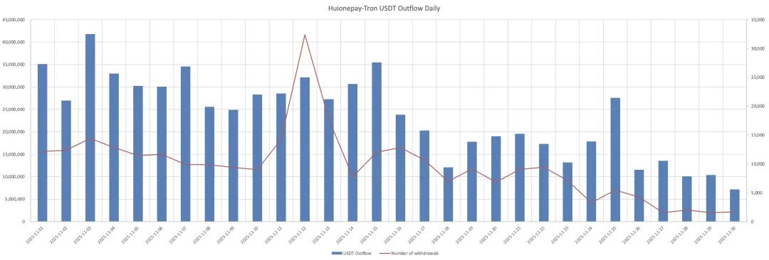 链上分析显示,Huionepay 的 USDT 日转出数量已经从月初的最高 4183 万降低至 30 日的 717 万。