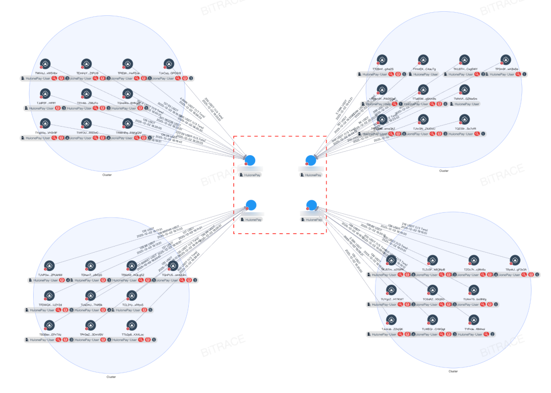 该组地址所有资金来自 Huionepay User 地址,系针对用户地址留存资金的归集行为,旨在应对用户提现请求。