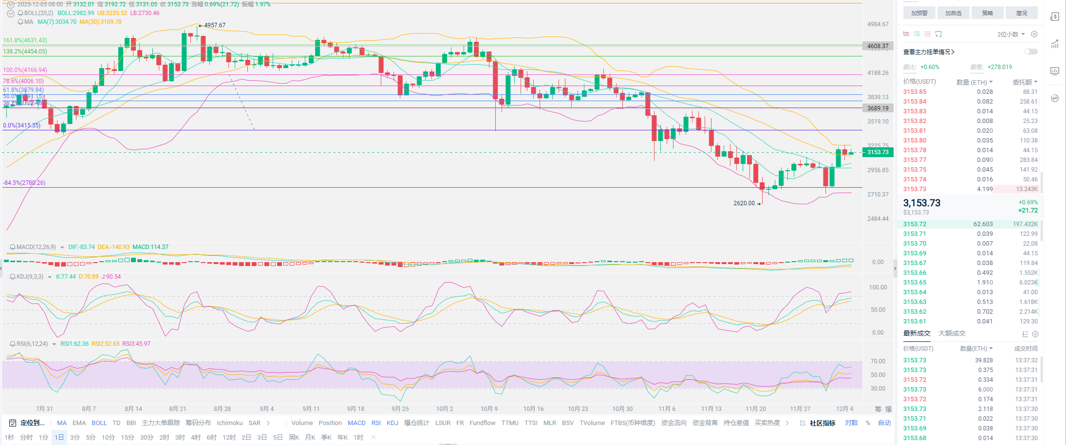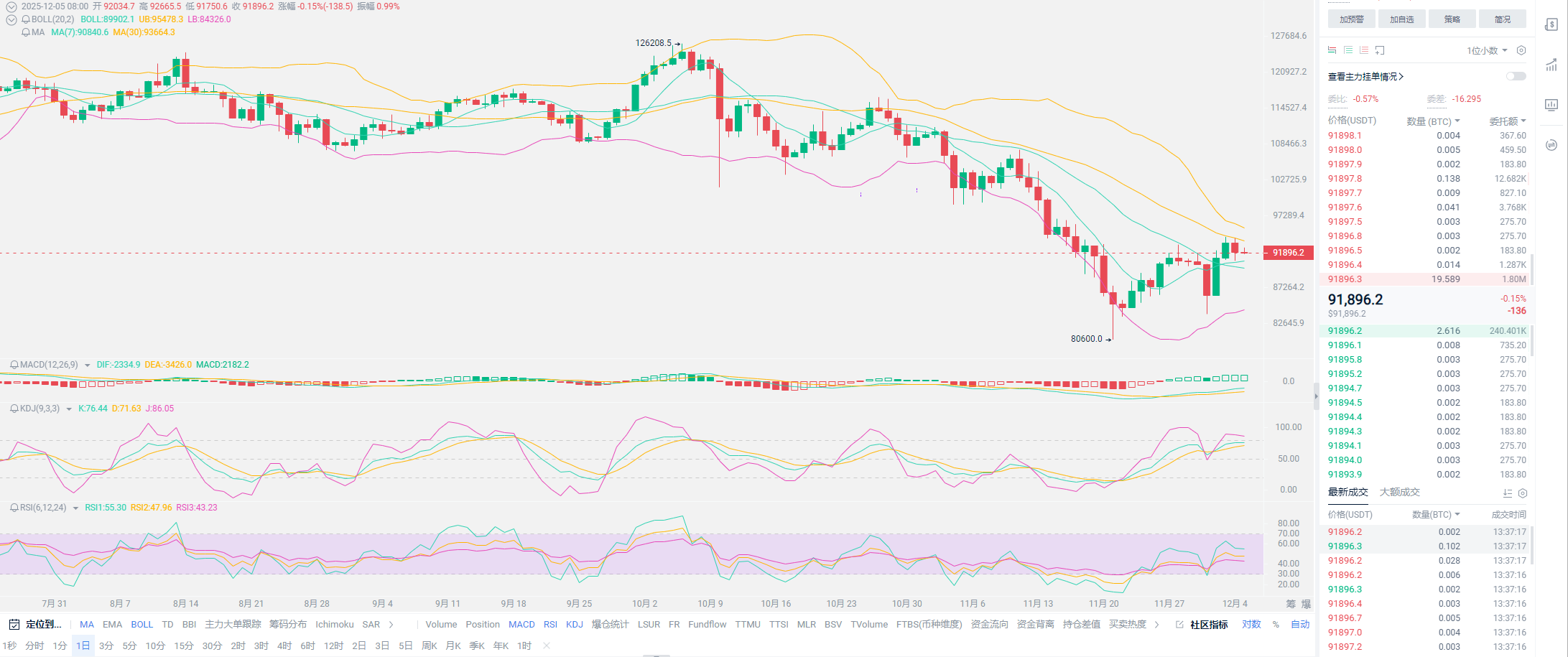 以太的反弹,肯定需要归功于技术层面的升级,本次交易的速率成功破千,也会吸引更多的资本介入。而趋势层面的比特币,反弹力度并没有达到预期的目标,很像诱多,各位耐心观察一下,仓位不要太重,就怕反弹的过程中,穿插着一些洗盘,现阶段洗下去可不是什么好事。把近期与后期的极大利好一起整合给大家,Schwab和花旗银行将于2026年初提供比特币抵押贷款,俄罗斯国有银行建议将7%资产配置于比特币和加密货币,市场预期美联储12月降息概率达94%,贝莱德CEO称比特币为“恐惧资产”,持有78万枚BTC,以太坊主网完成Fusaka升级,提升扩展性和安全性,包括香港近期上市的以太ETF,所有的信息显示,牛市的前期储备即将完成。