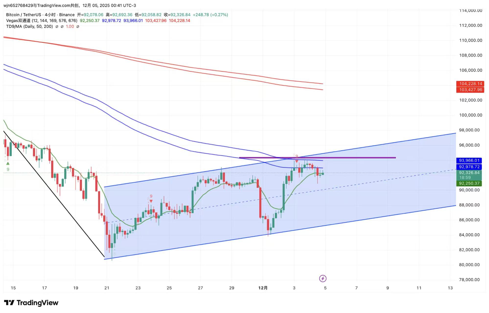 12.5大饼向上碰了下94000后开始回调,国际货币基金组织警告:稳定币普及或削弱央行控制权