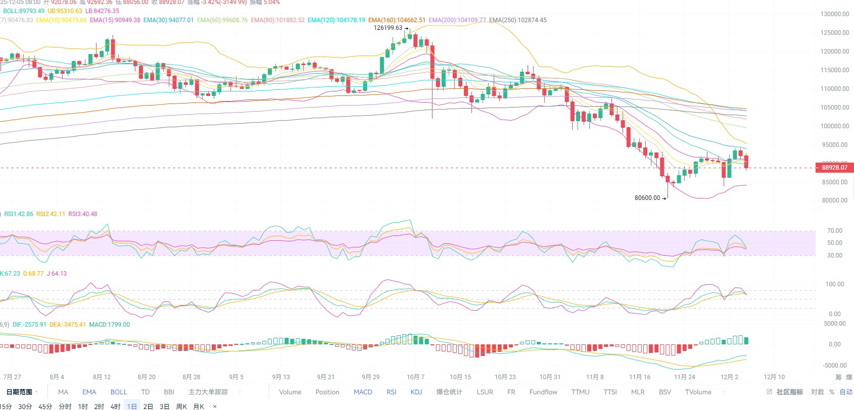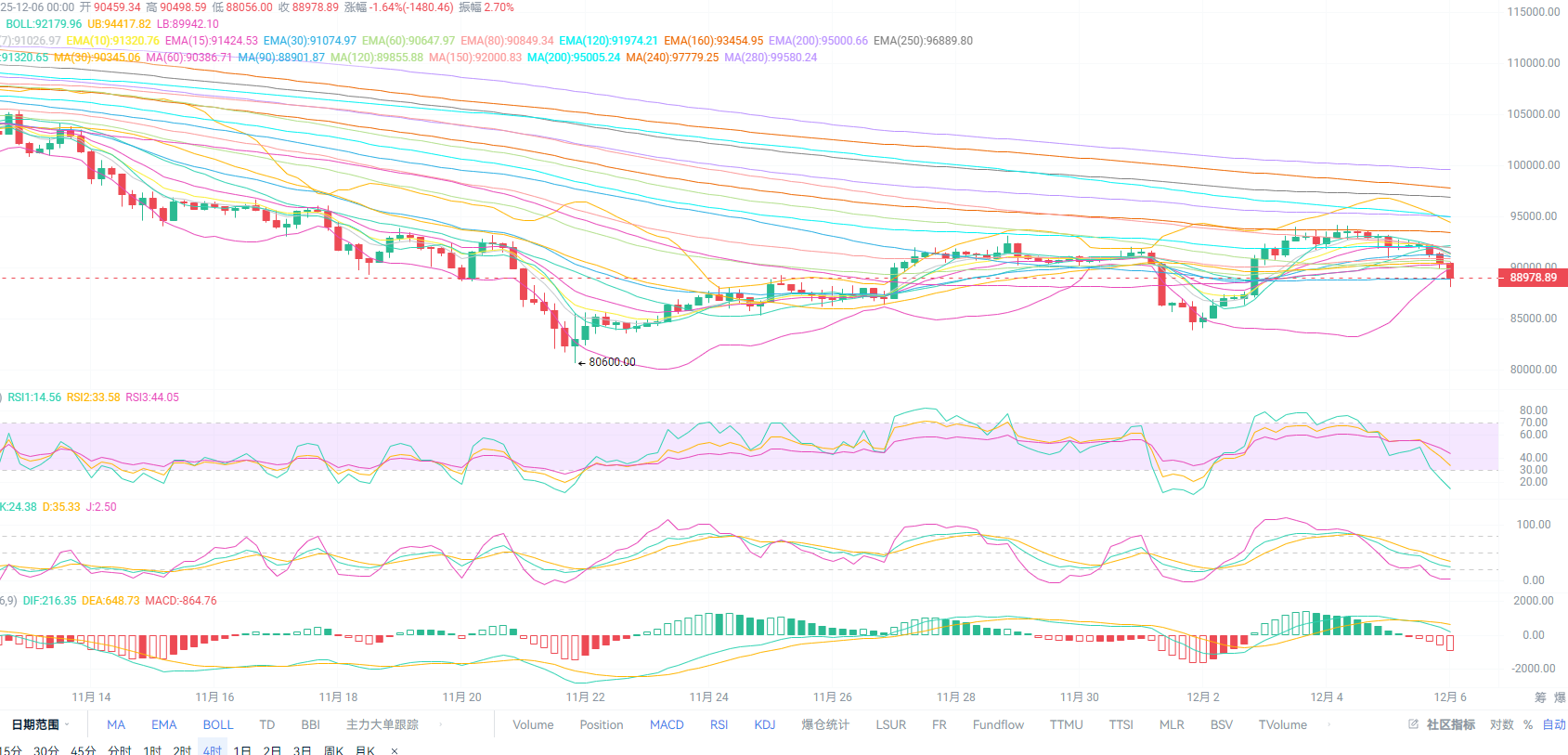 币圈红姐12.6:比特币4H如期死叉!88000二次防守失败将看到85000!今日比特币(BTC)最新行情分析及操作建议