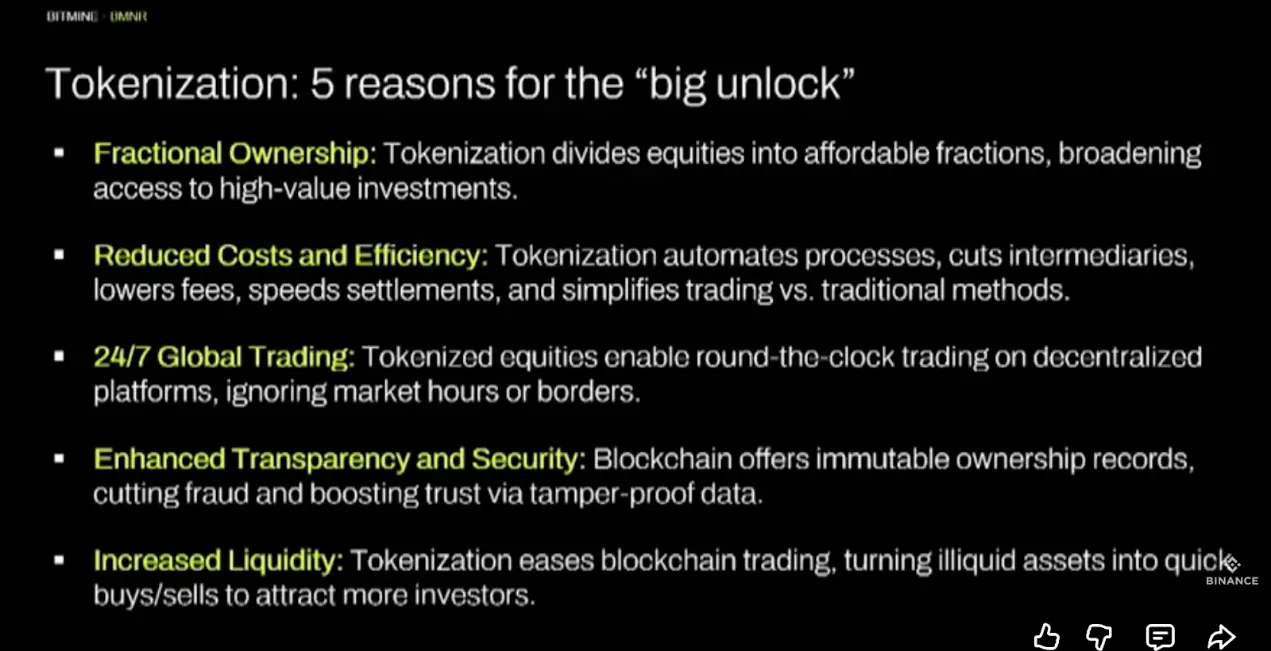 这种方式将创造出巨大的价值释放,而BitMine正在积极寻找并推动这一领域发展的项目。