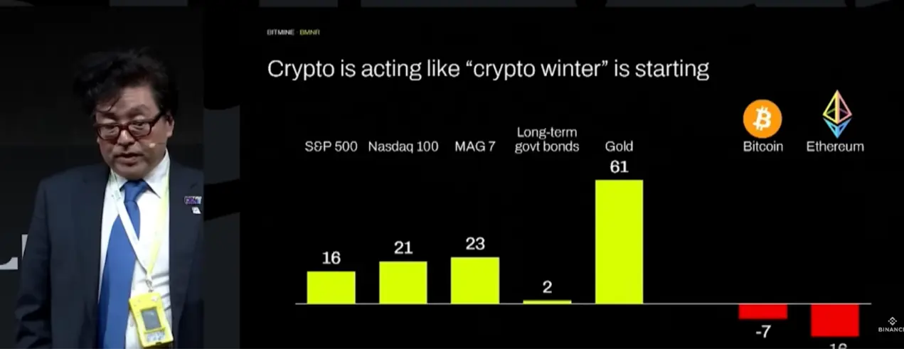 尽管看好加密货币的长期前景,但Tom Lee坦言,当前加密市场的表现如同“寒冬”,与传统资产形成鲜明对比,黄金今年迄今上涨了61%标普500指数上涨近20%而比特币和以太坊却是负回报。Arca的Jeff Dorman有篇文章标题很好:“无人能解释的抛售”。