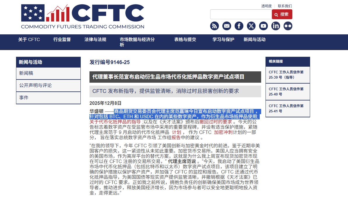CFTC 今天的动作本质上是在确认一件事,Token 化资产(包括原生加密货币与链上化美元资产)具备成为“合规抵押品”的潜力,可以被纳入美国最核心的金融基础设施。