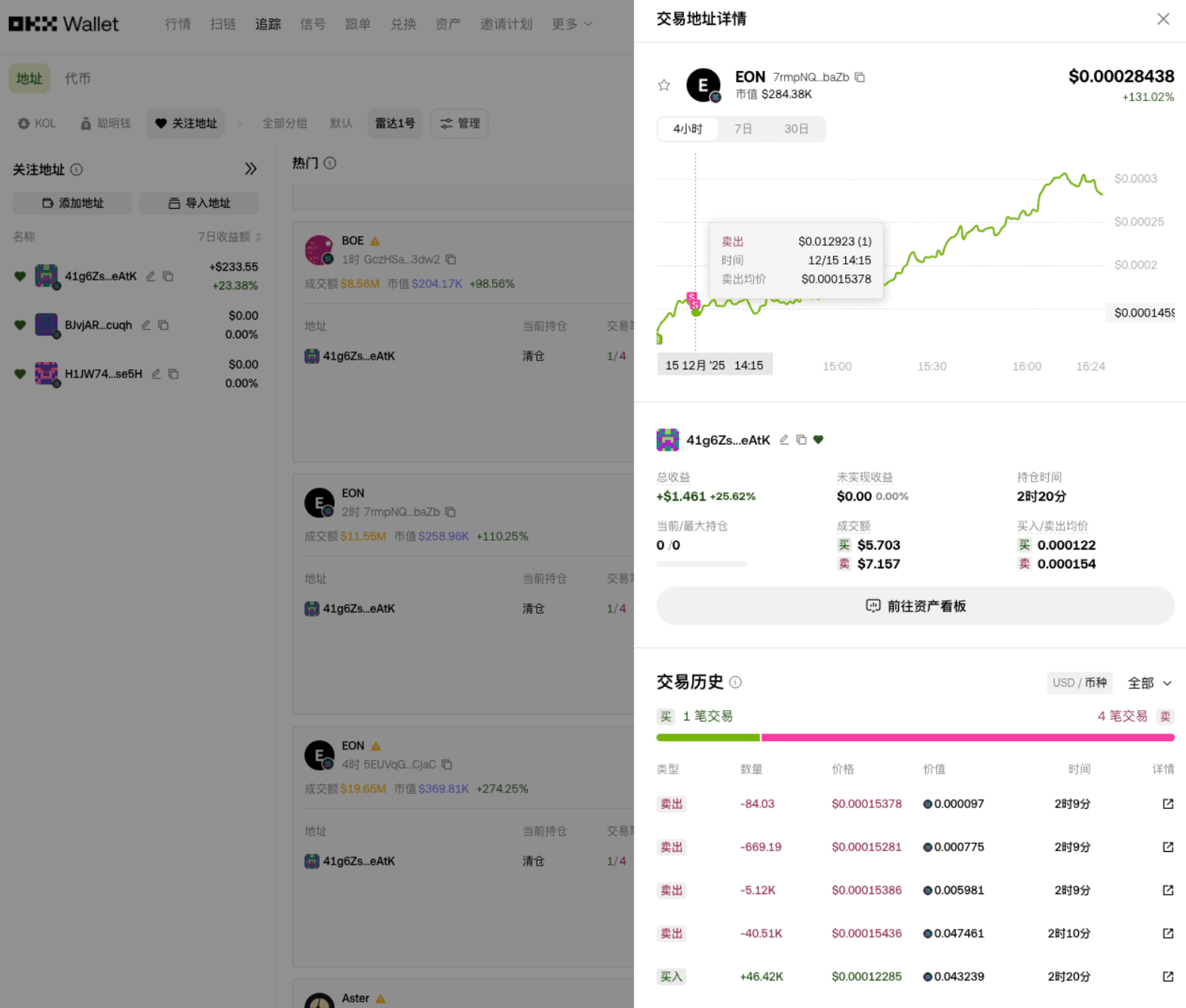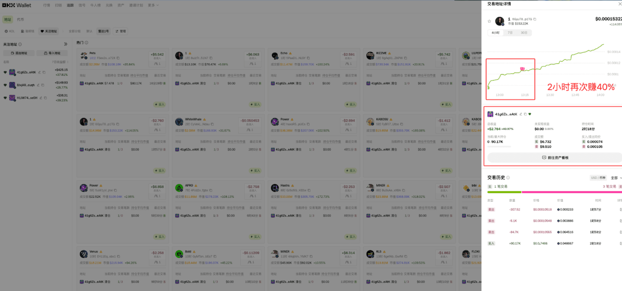 就在今天中午,咱们跟踪的聪明钱又出手了,2 小时赚 25%