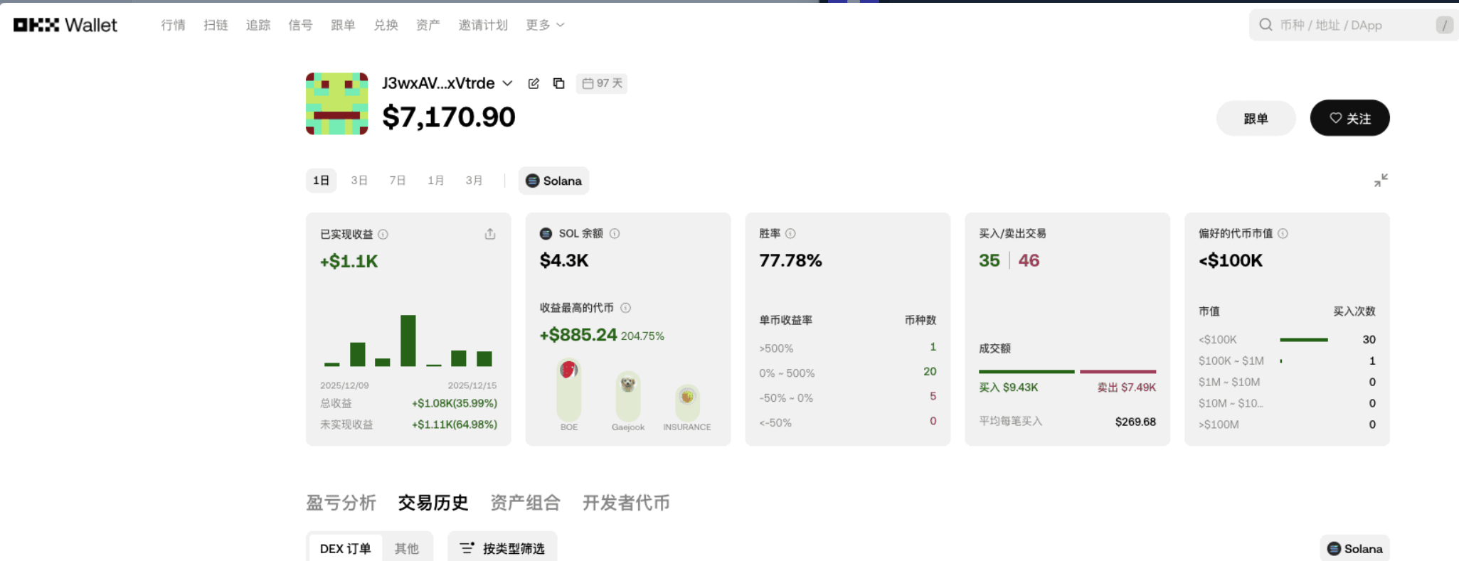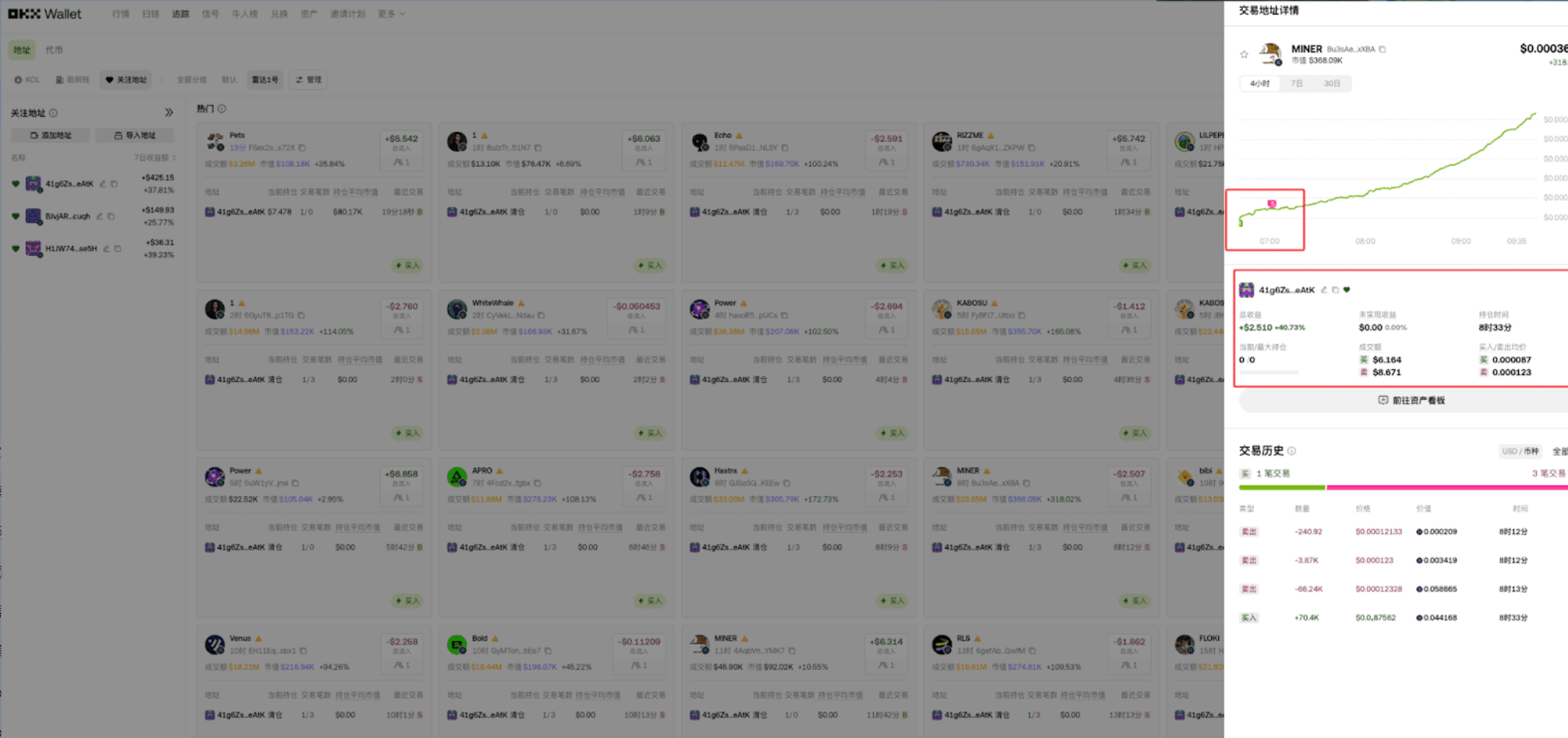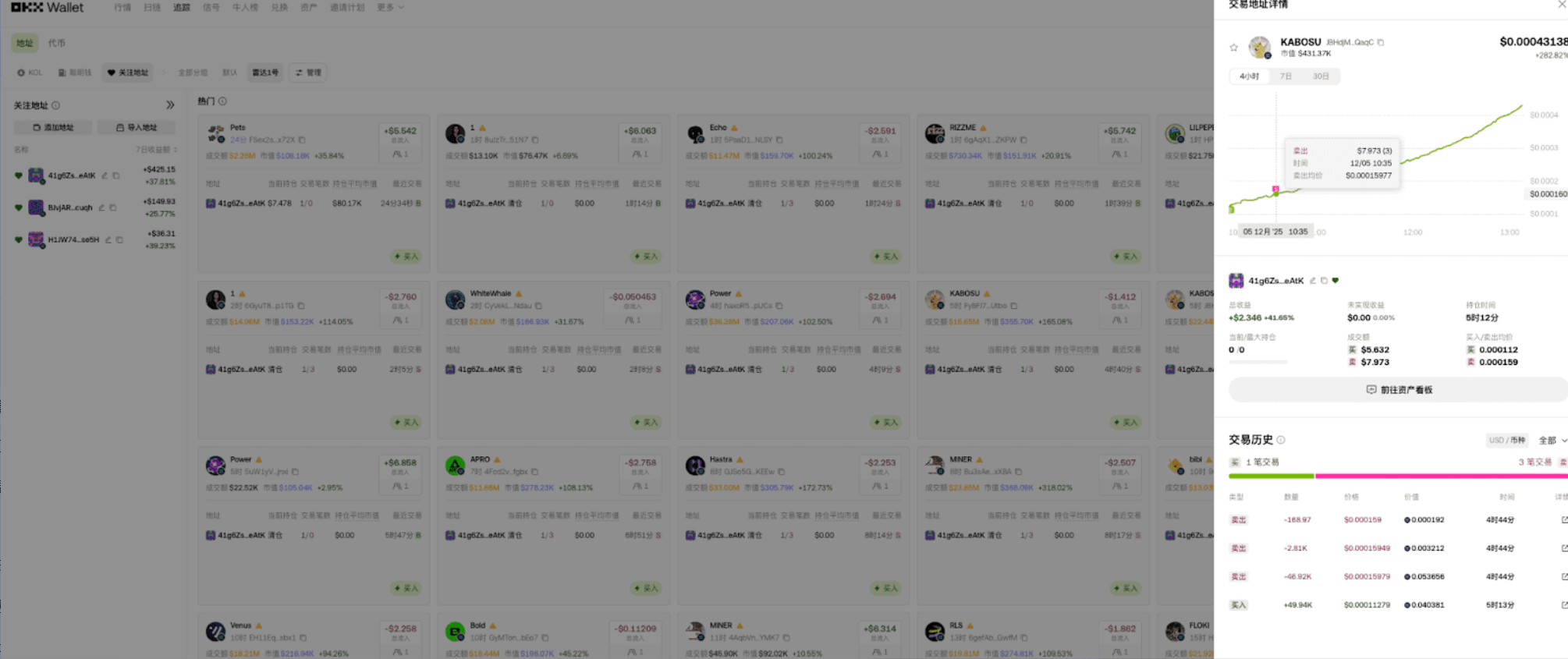 第一步先排除机器人和刷子。像那种几天内交易几千笔、甚至几万笔的地址,还有带 “K” 字标记的,全是套利机器人,交易没深度,只赚点小钱,不值得跟踪。