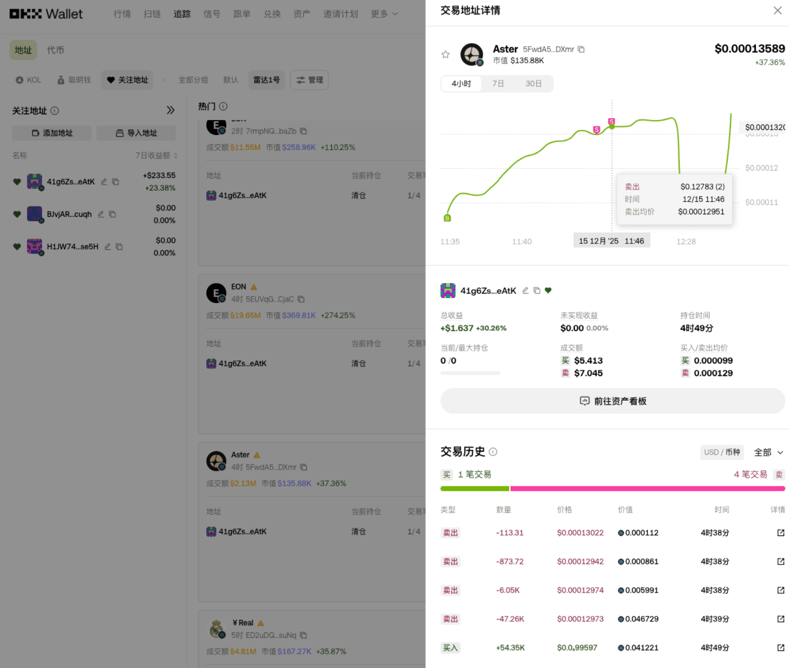 今早的 Aster 币,它持仓 4 小时赚 30%