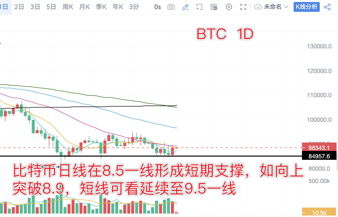 BTC :周六以区间8.77-8.87高抛低吸,趋势操作回踩8.75/8.7做多