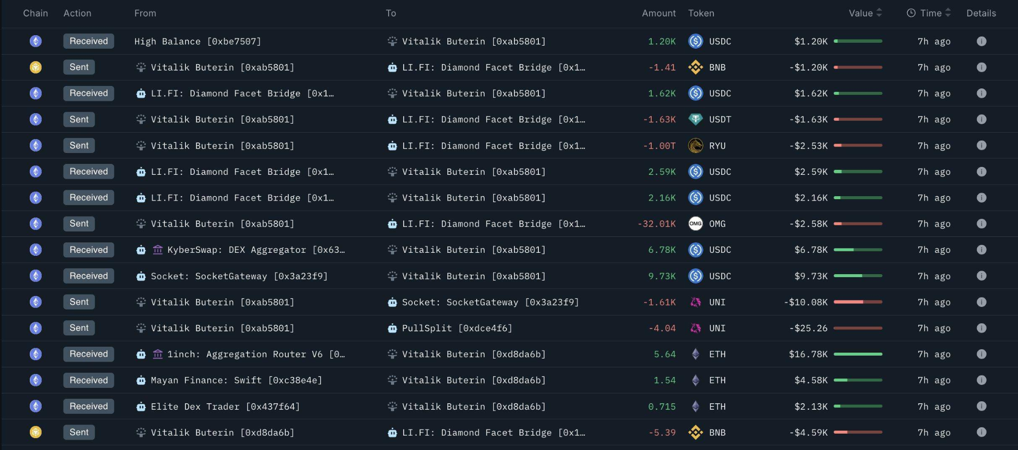 在过去两天中,以太坊的创始人继续抛售他不想持有的代币,包括UNI、ZORA、BNB、KNC、OMG等,然后通过Railgun转移总计564,672 USDC和27 ETH,价值约$80,364。