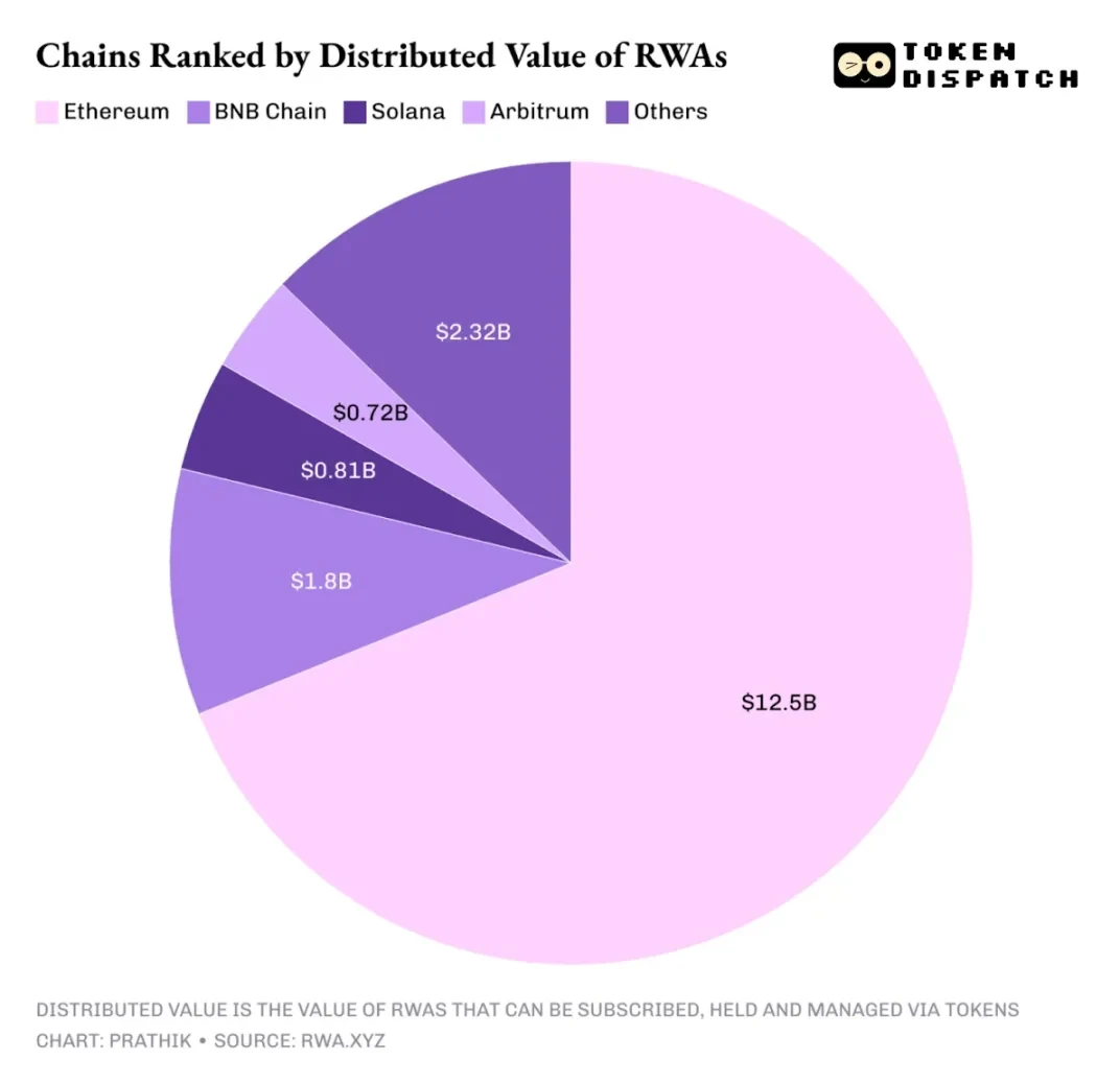 而在现实世界资产代币化领域,以太坊同样占据着绝对主导地位。