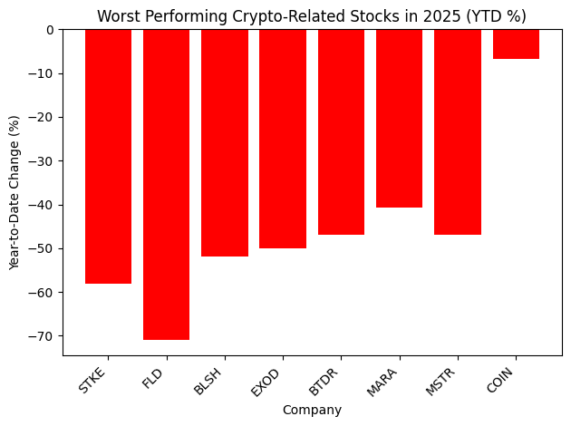 年中,以及在10月的第一周,加密市场短暂突破了4万亿美元大关,比特币在10月6日攀升至126,000美元以上。所有这些活动直接影响了加密股票,推动了一些股票上涨,而让其他股票在2025年中滞后。以下是这些公司在这一年中表现的详细回顾。