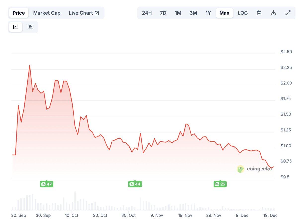 FOLKS 与众不同:它是一种借贷代币,在“行情如此垃圾”的一年里,它被视作 Alpha。公式:“币安和 Kraken 从第一天起就表示了支持,跨链池不断增长,没有明显的天量解锁。”最后一点非常重要。直到 12 月 15 日代币解锁其表现都不错。