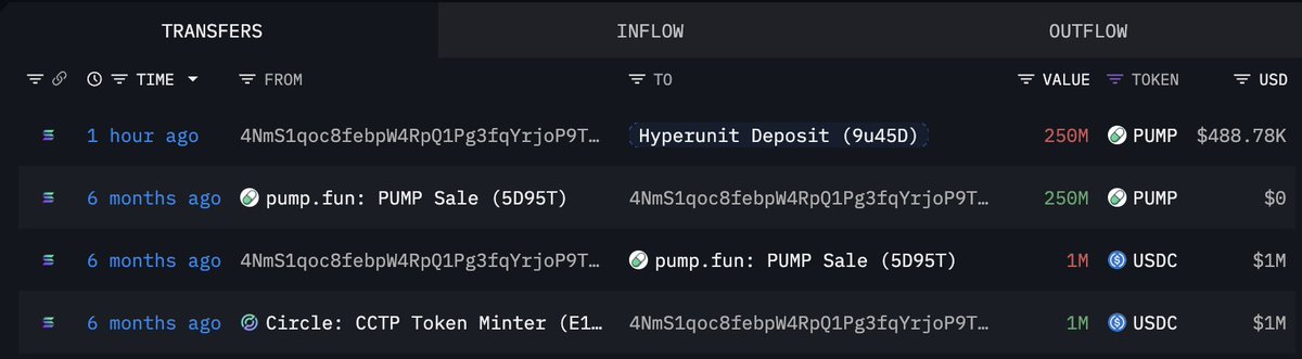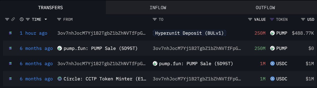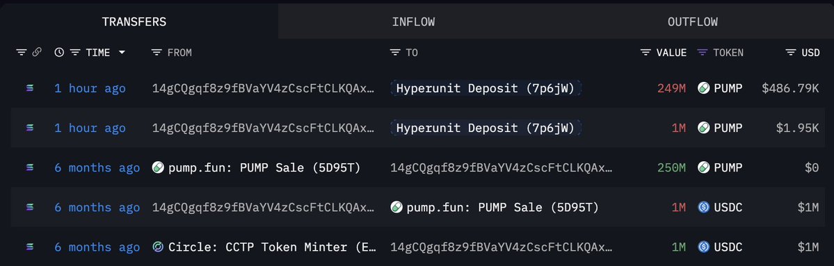 六个月前,他在两个钱包中花费了300万美元USDC购买了750M $PUMP的公开销售。