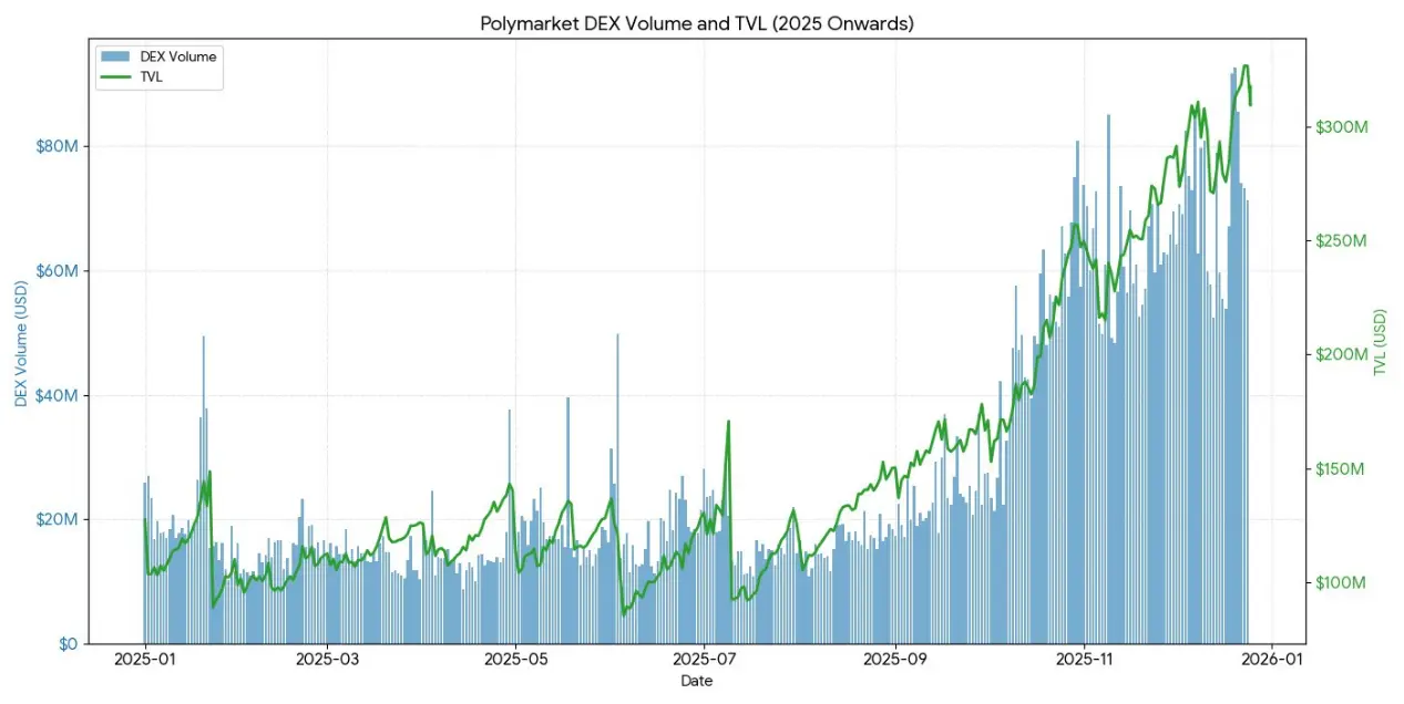 • Polymarket 在 2024 年处理了超 90 亿美元的交易,月活跃交易者峰值达 31.45 万。