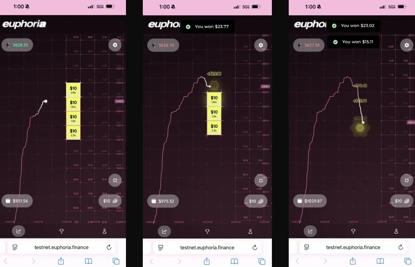 Euphoria 以一种激进的简化理念获得了 750 万美元的种子轮融资。其愿景是:“您只需查看图表,看到价格线的变动,然后点击网格中您认为价格接下来会触及的方格。”无需订单类型、无需保证金管理、无需希腊字母,只需在 CLOB 上执行正确的方向性押注。