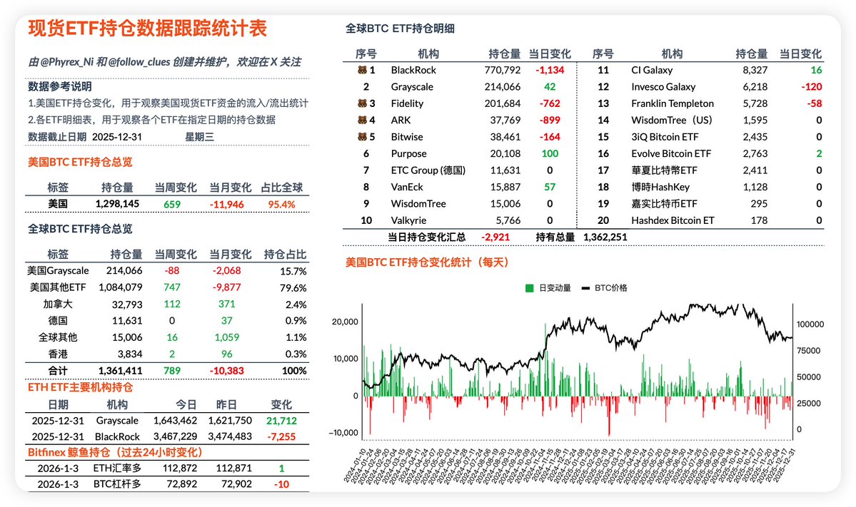 不过整整2025年所有美国机构还是净流入了 104,847枚 Bitcoin,大概是美国机构总存量的 8% 左右,这个数据也说明了虽然年底投资者对于加密货币的信心不足,但仍然还有多数的传统投资者在保持观望。