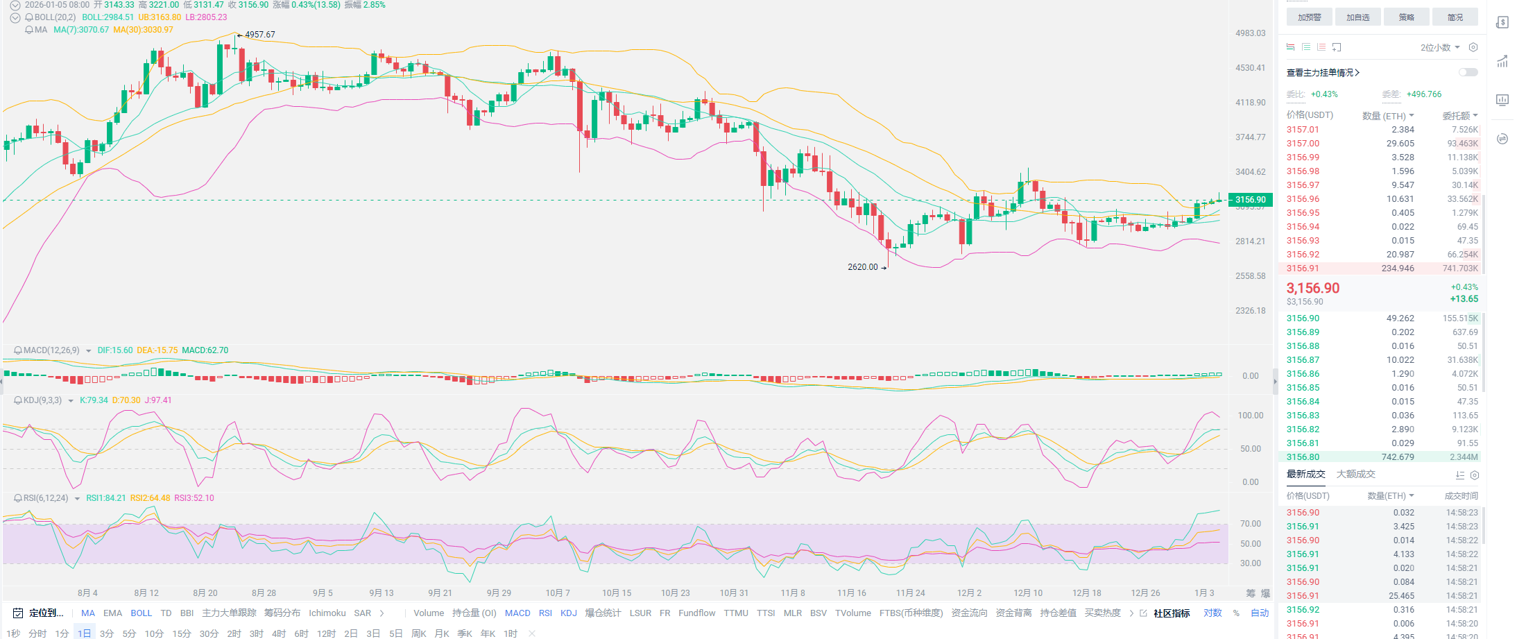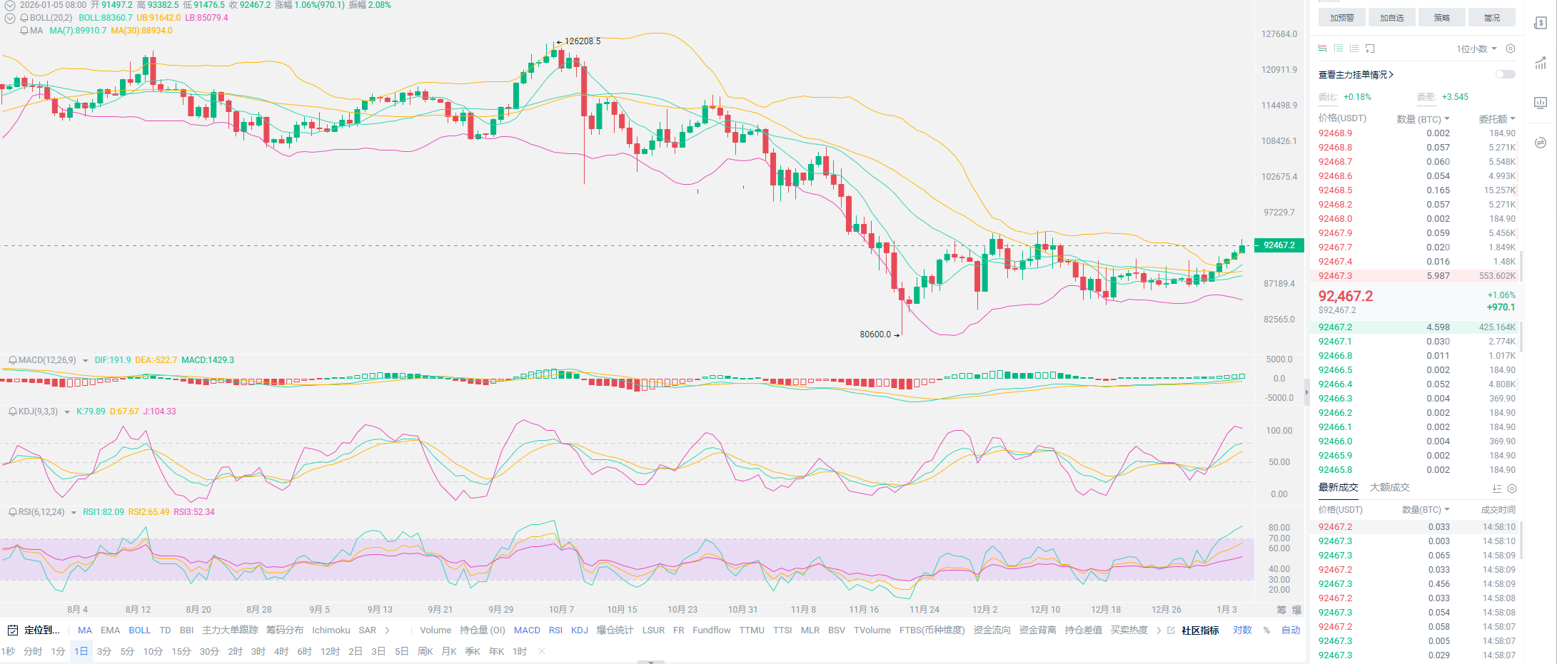 比特币似乎重回增长区间,定义尚早,但价格已至。自11月21日创下新低80600以来,至1月5日全部都是修复行情,目前的价格已经来到前期最高点94555位置,现报价92446。提醒各位风险已至,一定要保护好自己手中的筹码;目前从线性来看,比特币并未走出牛市的迹象,更像是牛市前期的沉淀,所以老崔不会在关键时刻给出烟雾弹;有很多都是前期并未进场的用户,没有把握住前期的布局,现阶段最好是不要轻易介入。按照流入的资金量来判断,比特币确实有冲击压力位置的能力,但关键点是,清除这一波泡沫是否足够?庄家是有再度砸盘的可能,所以呈现到的结果,就是上千点开始拉盘,也有很多分析师觉得这是诱多。