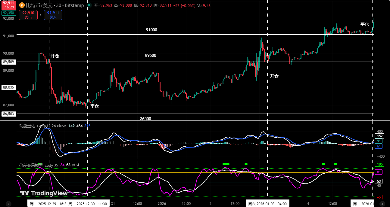 • 平仓:当币价下跌至86,000~86,500美元区域出现企稳信号时,清仓全部空单获利了结。