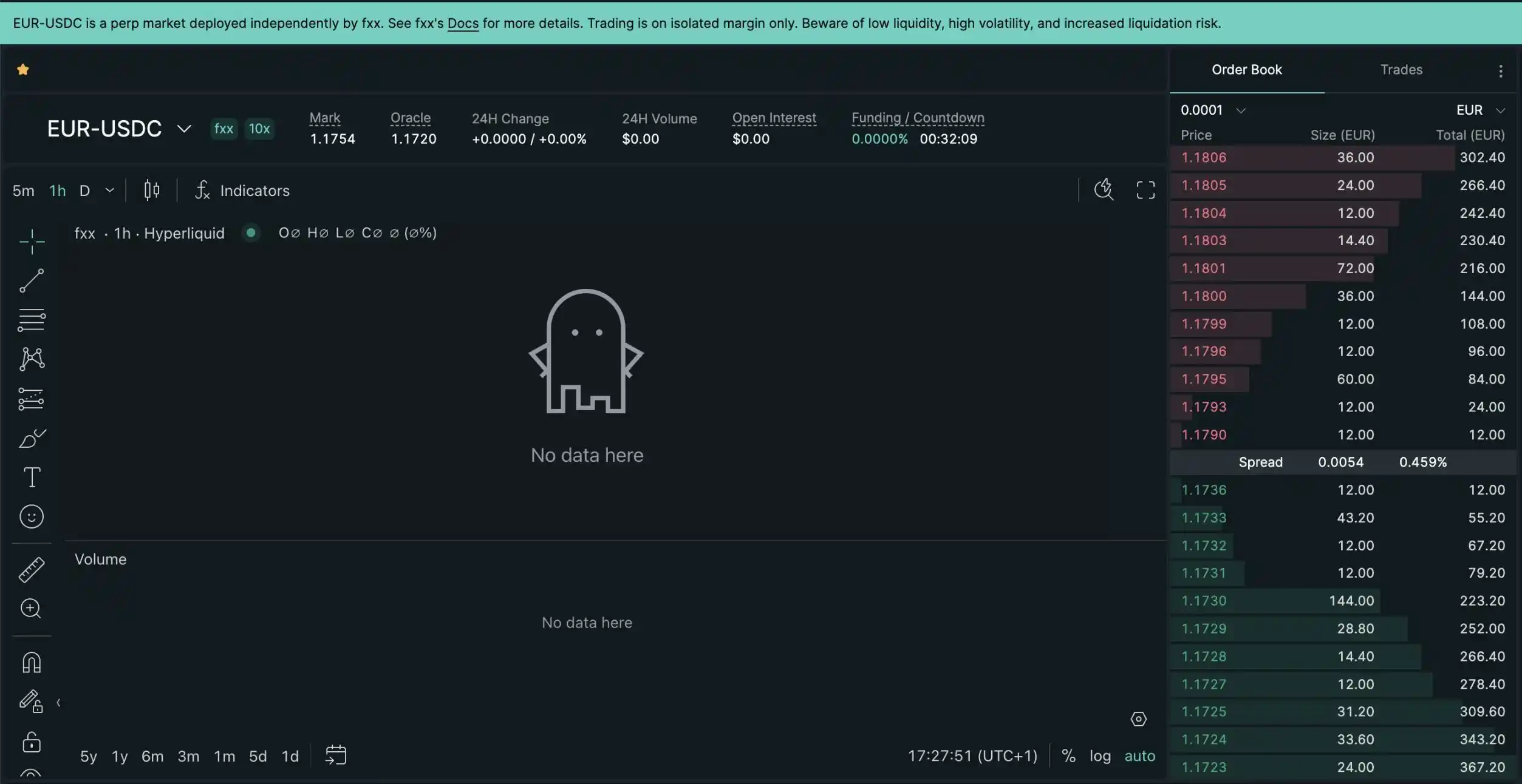 果不其然,不久之后,trade.xyz 就正式上线了欧元兑美元(EURUSD)的交易对。