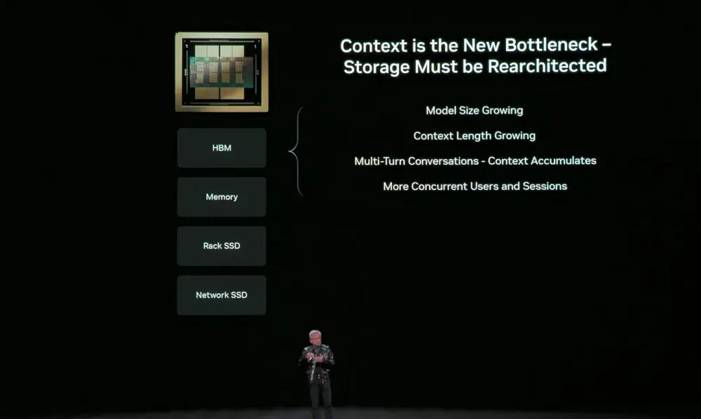 但GPU显存虽快却稀缺,传统网络存储对短期上下文而言效率过低。AI推理瓶颈正从计算转向上下文存储。所以需要一个介于GPU与存储之间、专为推理优化的新型内存层。
