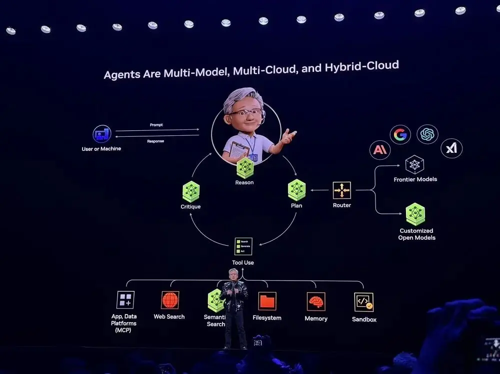 受到Perplexity的启发,黄仁勋观察到,Agents应该是多模型、多云和混合云的,这也是Agentic AI系统的基本架构,几乎所有的创企都在采用。