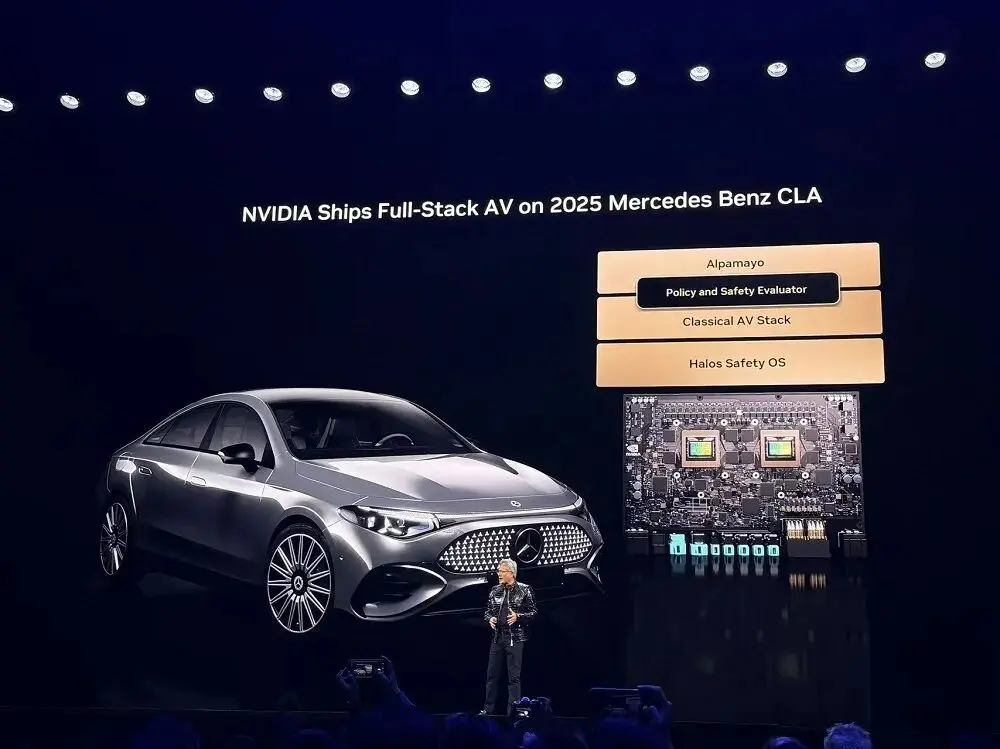 黄仁勋称,搭载Alpha-Mayo的梅赛德斯奔驰CLA已经投产,还刚刚被NCAP评为世界上最安全的汽车。每条代码、芯片、系统都经过安全认证。该系统将在美国市场上线,并将在今年晚些时候推出更强驾驶能力,包括高速公路脱手驾驶,以及城市环境下的端到端自动驾驶。