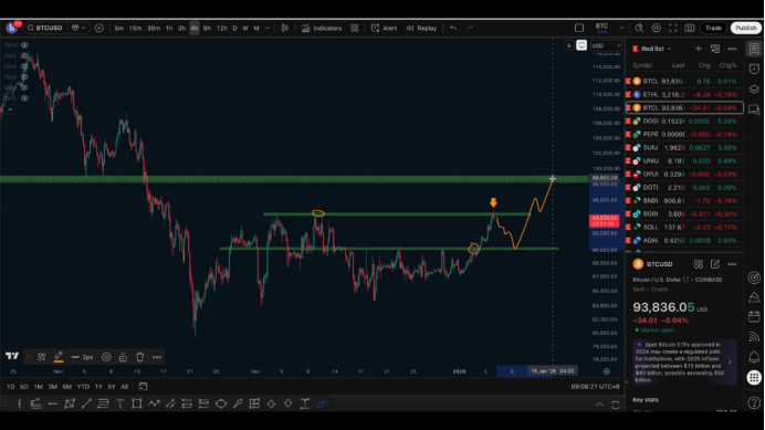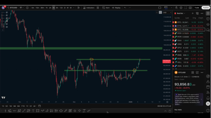 在昨天的反弹过程中,价格成功突破了94,000这一前高位置。