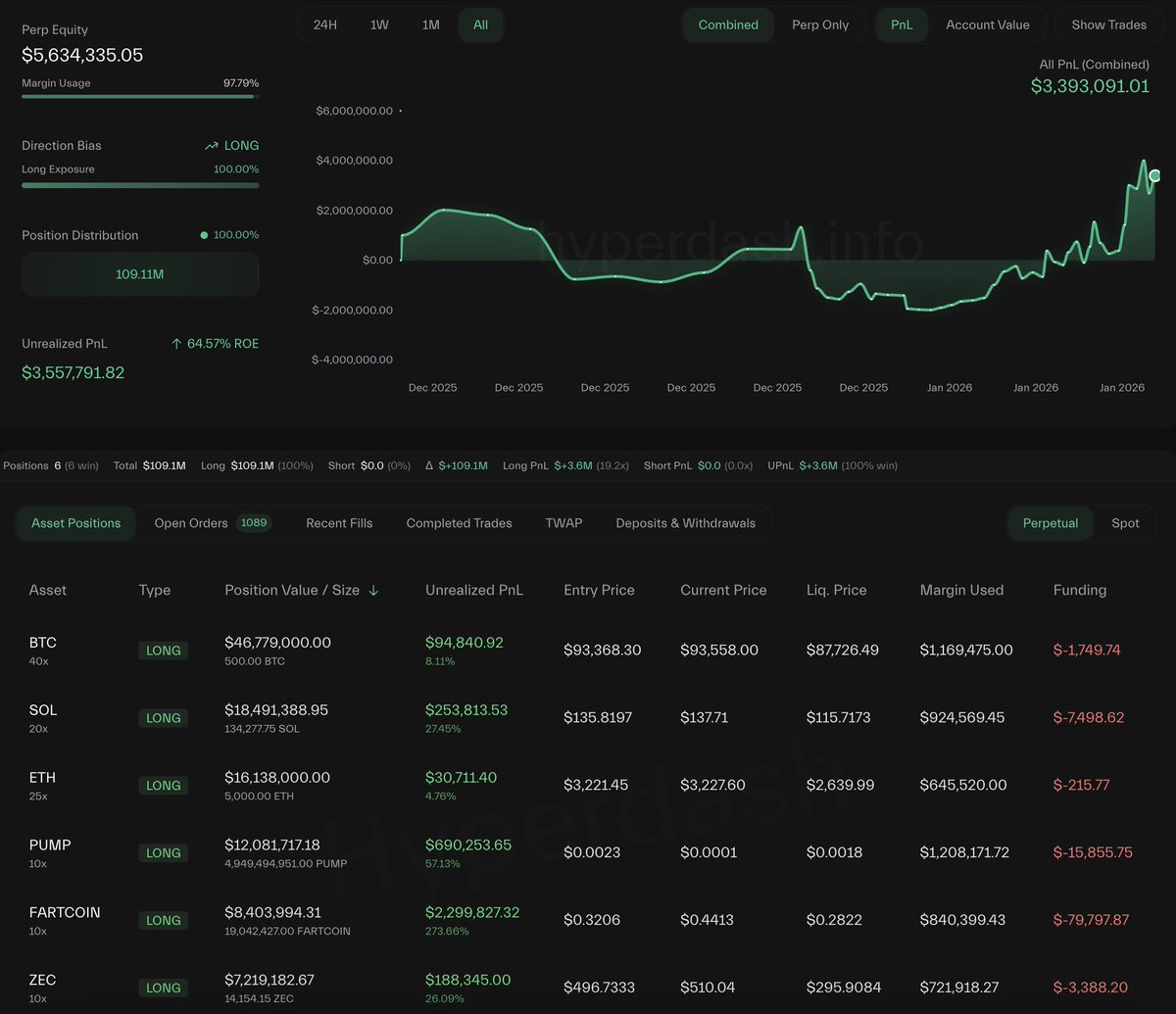他现在在多个资产上持有最大杠杆的多头头寸: