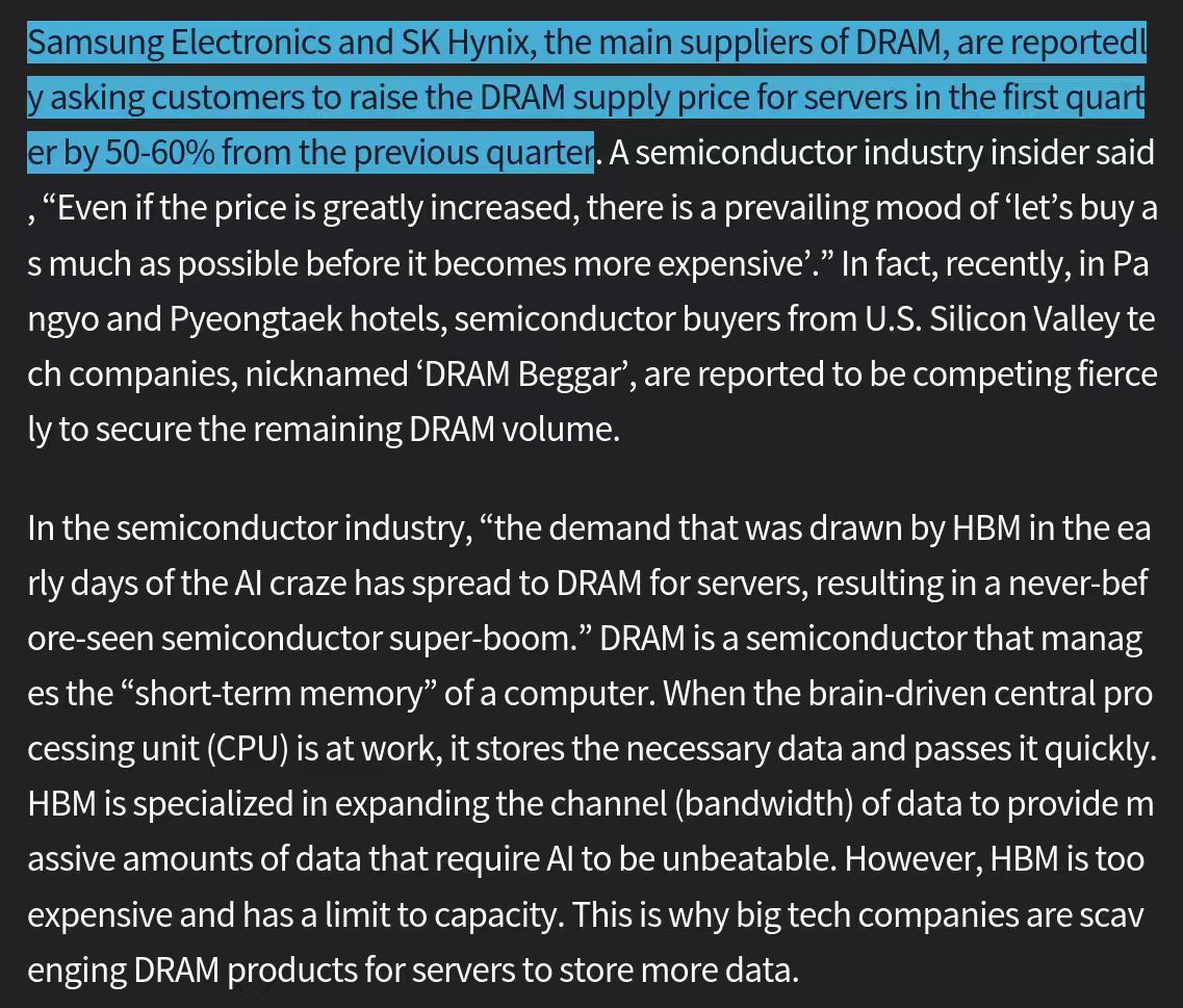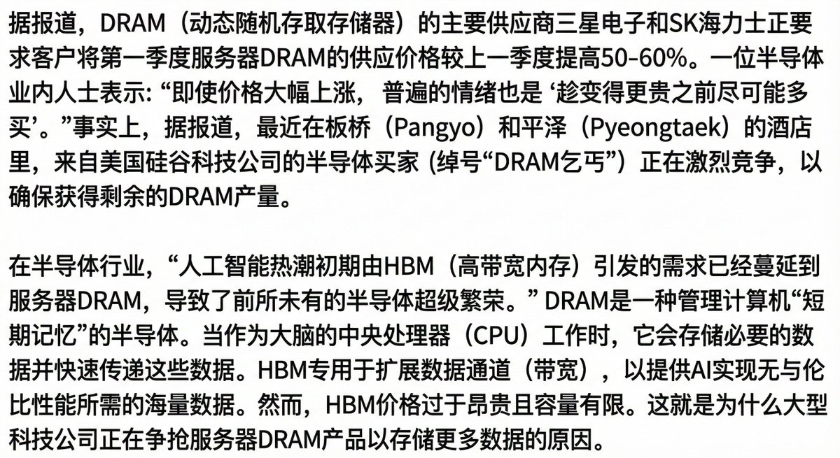 1.内存条,预计26年一季度,内存价格将飙升50-60%,现在市场普遍比较fomo,都在趁着没涨价前,赶紧囤货。