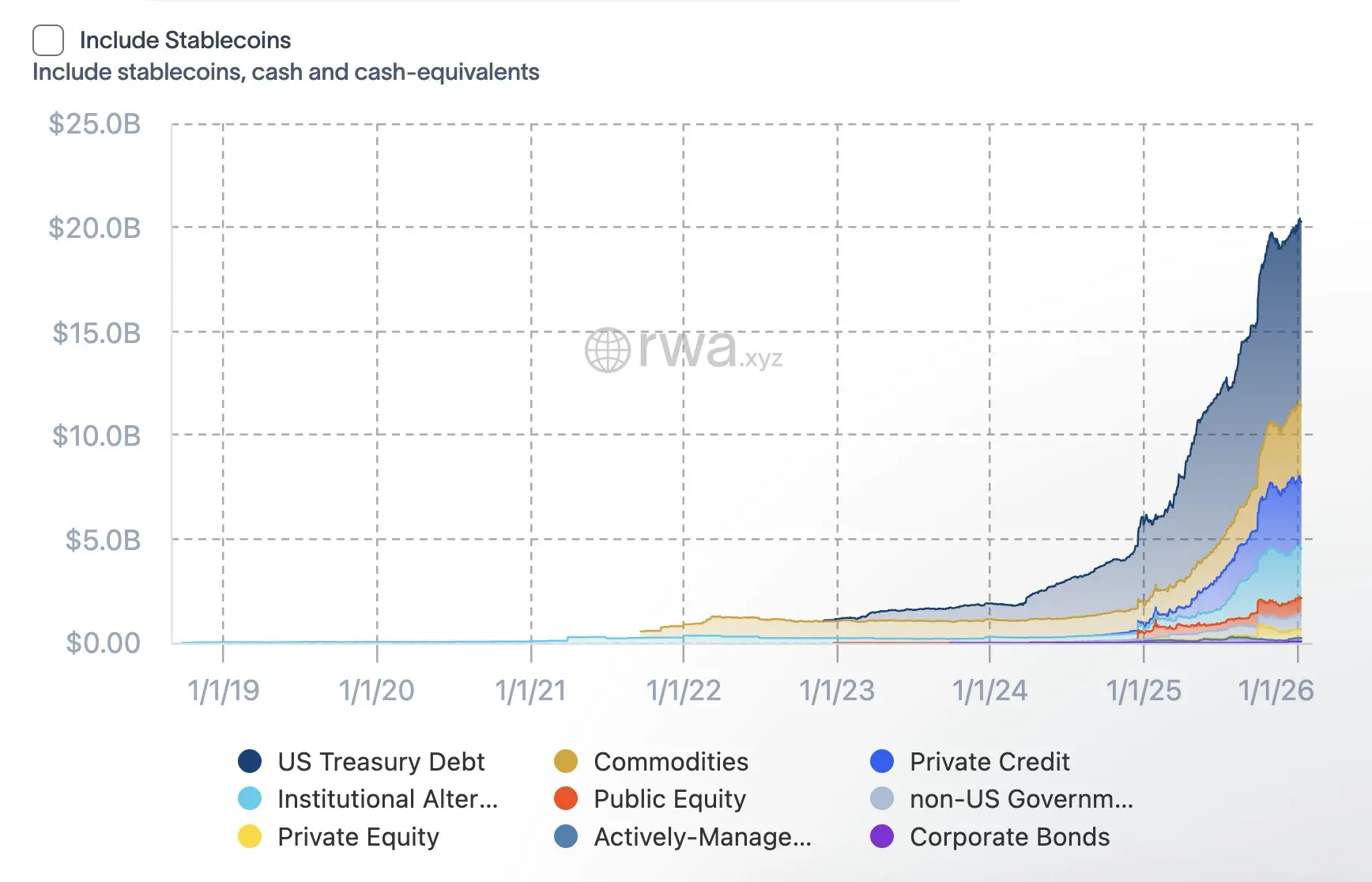 我很想说 RWA 将迎来有史以来最大的一年。 然而,从技术上讲,要打破 2025 年 140 亿美元的增长是很难的。 我认为流动性将继续涌入这一领域,这将是又一个丰收年,但增长百分比可能会小于 2025 年。 2026 年可能会在该领域带来许多收益/代币化机会和大量的山寨币交易布局。