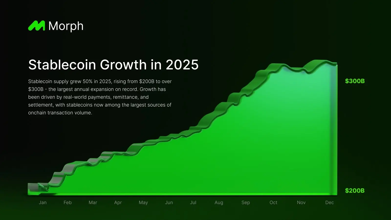 去年,稳定币总供应量增长了 50%(从 2000 亿美元增至 3000 亿美元)。 我相信今年我们将看到稳定币供应量类似的增长,这在一定程度上受到美国规范稳定币的《天才法案》 的进一步催化。