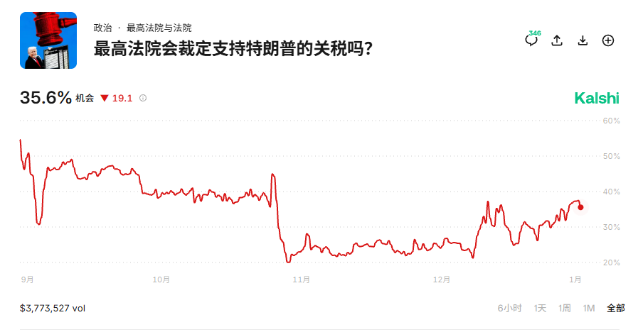 目前从 Kalshi 的预测数据来看,支持率只有 35.6% 。