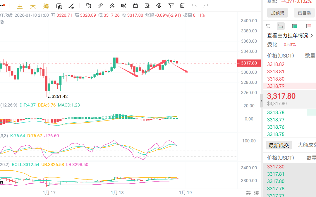 币圈浮竹:1.18 比特币以太坊短线承压分析