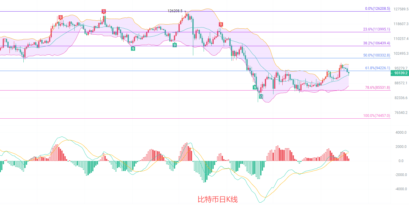 下方92500到92000不破北上,止损400点,目标看93500到94000,破位看94500