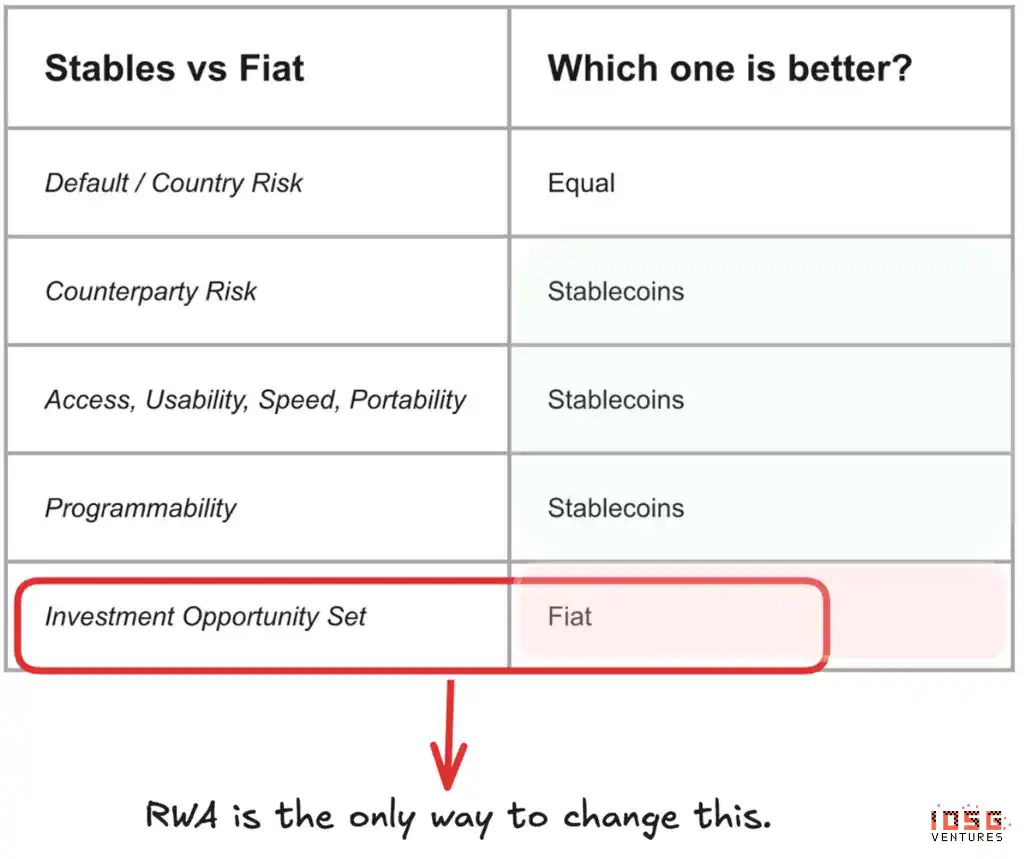 然而,存在一个关键局限:相比法币,稳定币的投资选择仍然受限。传统金融市场提供了广阔的生产性投资机会——股票、债券、房地产和另类资产。稳定币尽管技术优越,仍受限于加密原生的收益来源和投资机会,仅凭这些无法支撑其规模突破 1 万亿美元大关的可持续增长。
