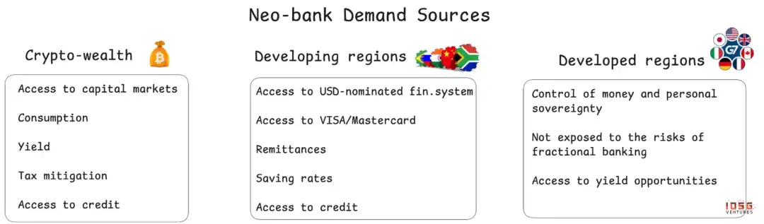 这创造了一个三重市场机会,Neobanks 可以利用同一套底层稳定币基础设施服务根本不同的客户需求。