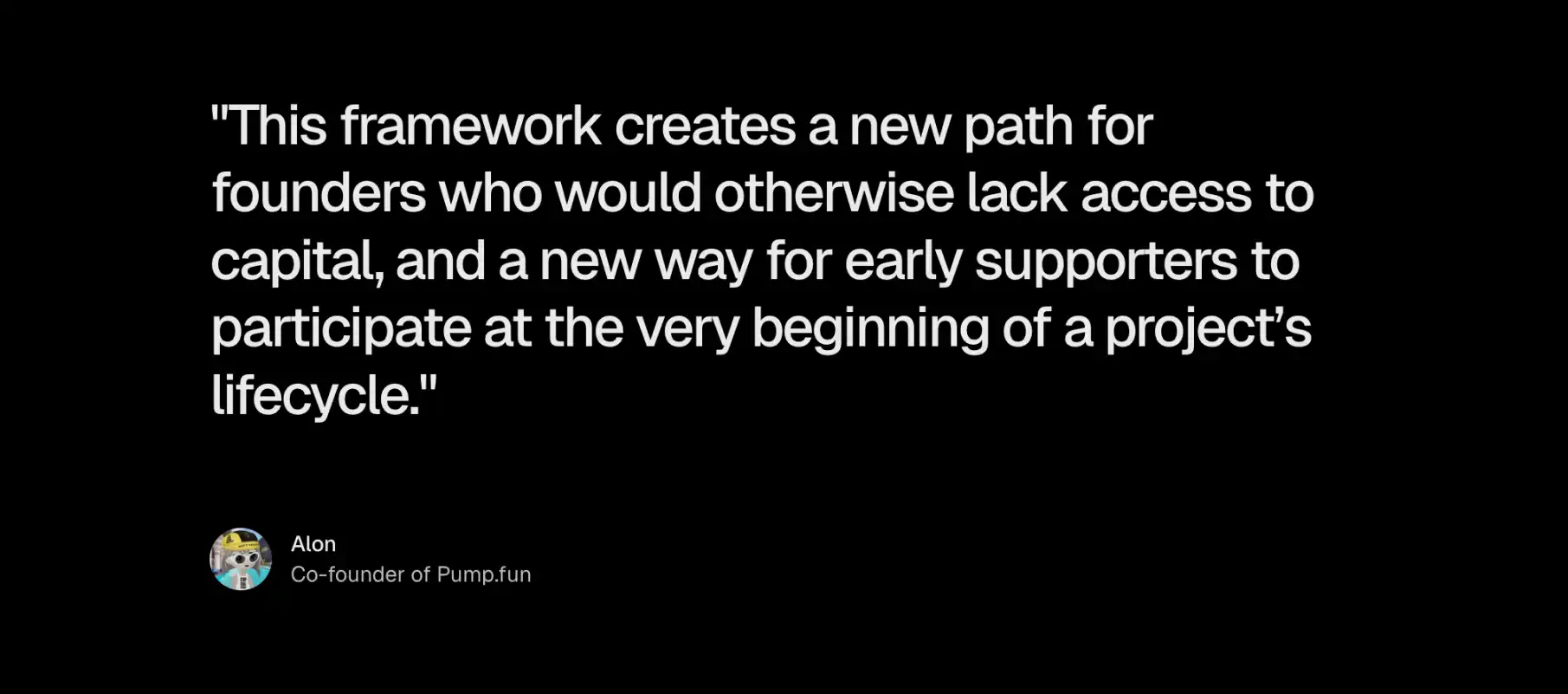 用 Pump.fun 联合创始人 Alon 的话说,「这个框架为那些无法获得传统资本的创始人创造了新路径」。从某种意义上说,这是对传统 VC 投资逻辑的一次挑战——既然 Web3 强调去中心化,为什么项目的好坏还要由几个投资人说了算。